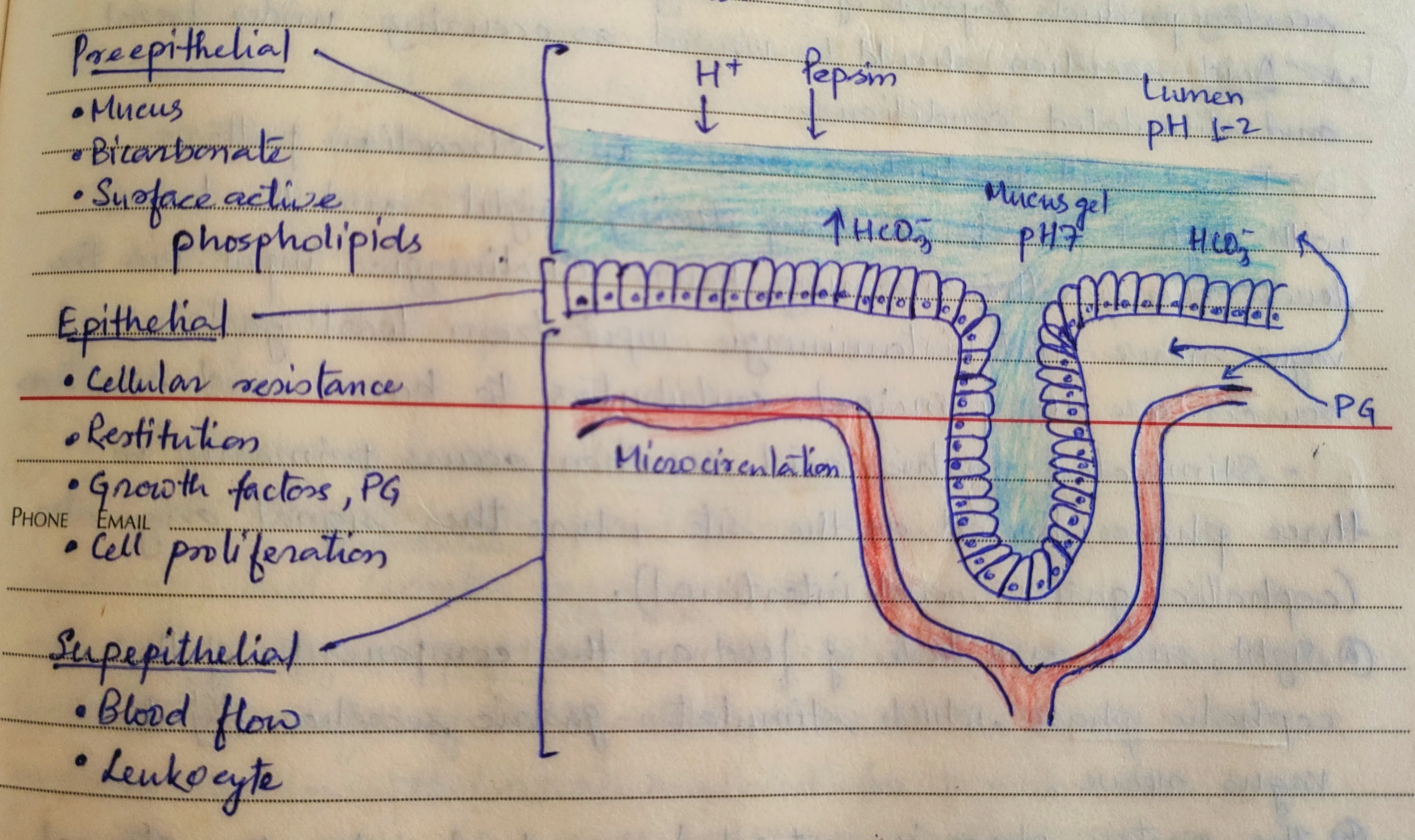 Epithelial : Cellular resistance, Restitution, Growth factors, Prostaglandins, Cell proliferation.